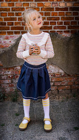 Gecombineerd met een paar kniekousen en nieuwe ballerina's